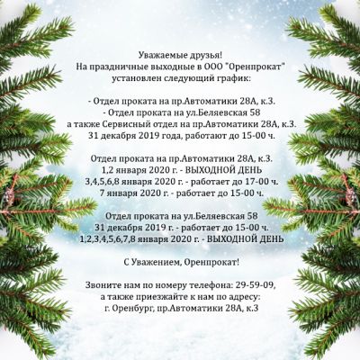 График работы Оренпрокат в праздничные выходные